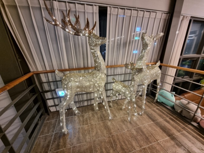 2층에서 3층 올라가는 계단에 있는 사슴가족 조형물이 반짝반짝하네요. 곧 크리스마스가 올텐데 확실히 인기가 많은 것 같아요. The deer family sculpture on the stairs from the 2nd to the 3rd floor is sparkling. Christmas is coming soon, and I think it's definitely popular.