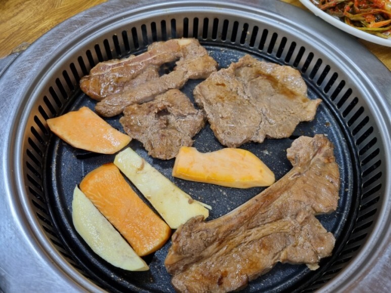 갈비는 무난합니다. 고구마 구워먹으면 이건 먹을 만해요 ㅎㅎ Galbi is normal. If you grill sweet potatoes, it's not bad.