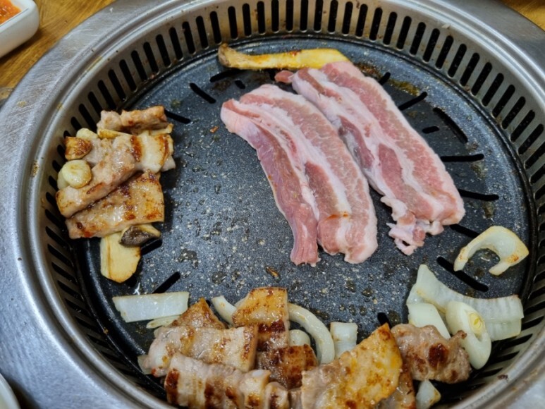 바다로 여행을 오면 조개구이나 해산물만 먹잖아요. 그러다 보면, 노릇노릇한 삼겹살이 너무 생각납니다. When you travel going to the sea, you only eat grilled clams or seafood. Then, the Samgyebsal(pork belly) comes to mind.